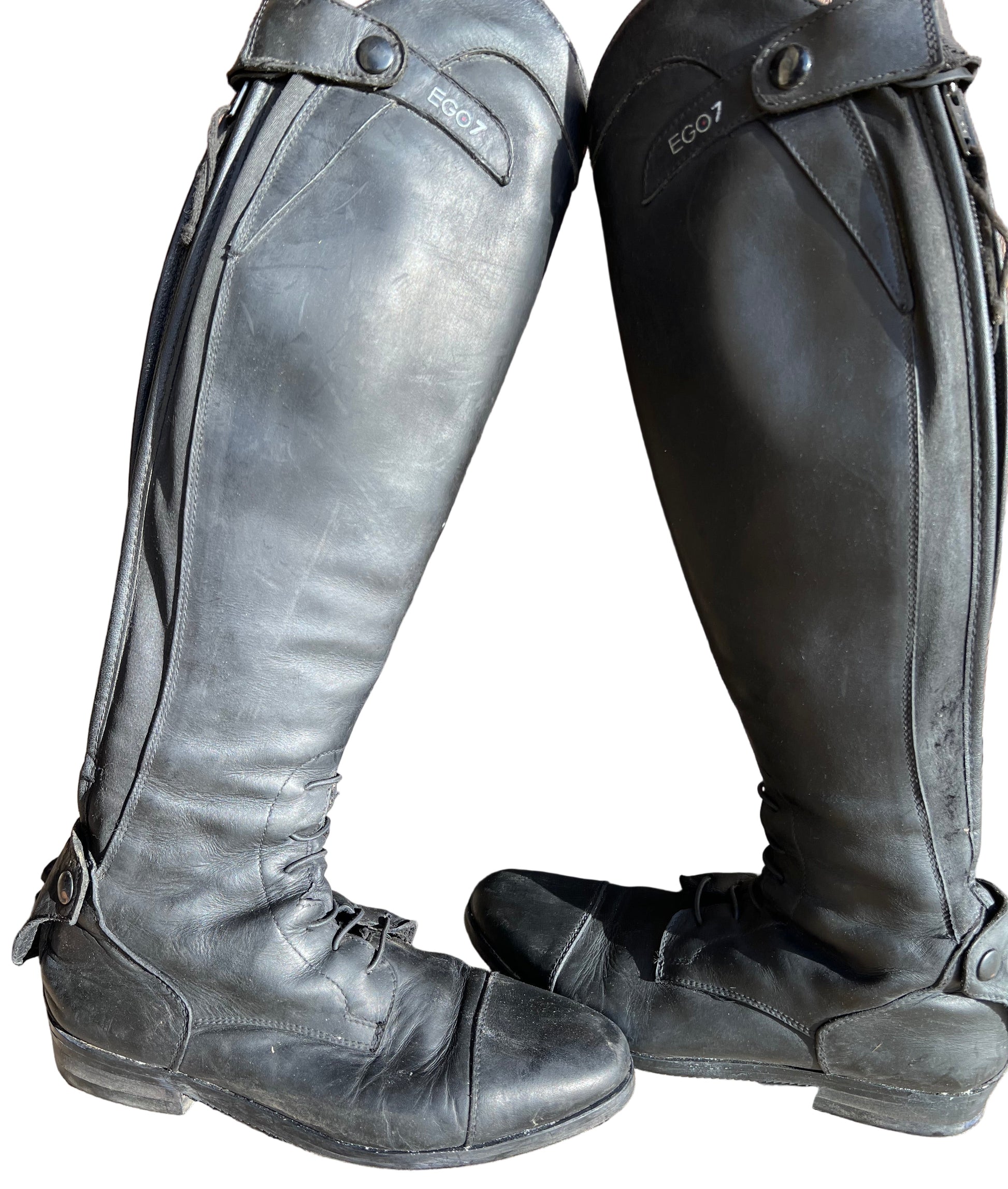 Les bottes Orion avec lacets de la marque Ego7 sont idéales pour monter à cheval en concours comme aux écuries.