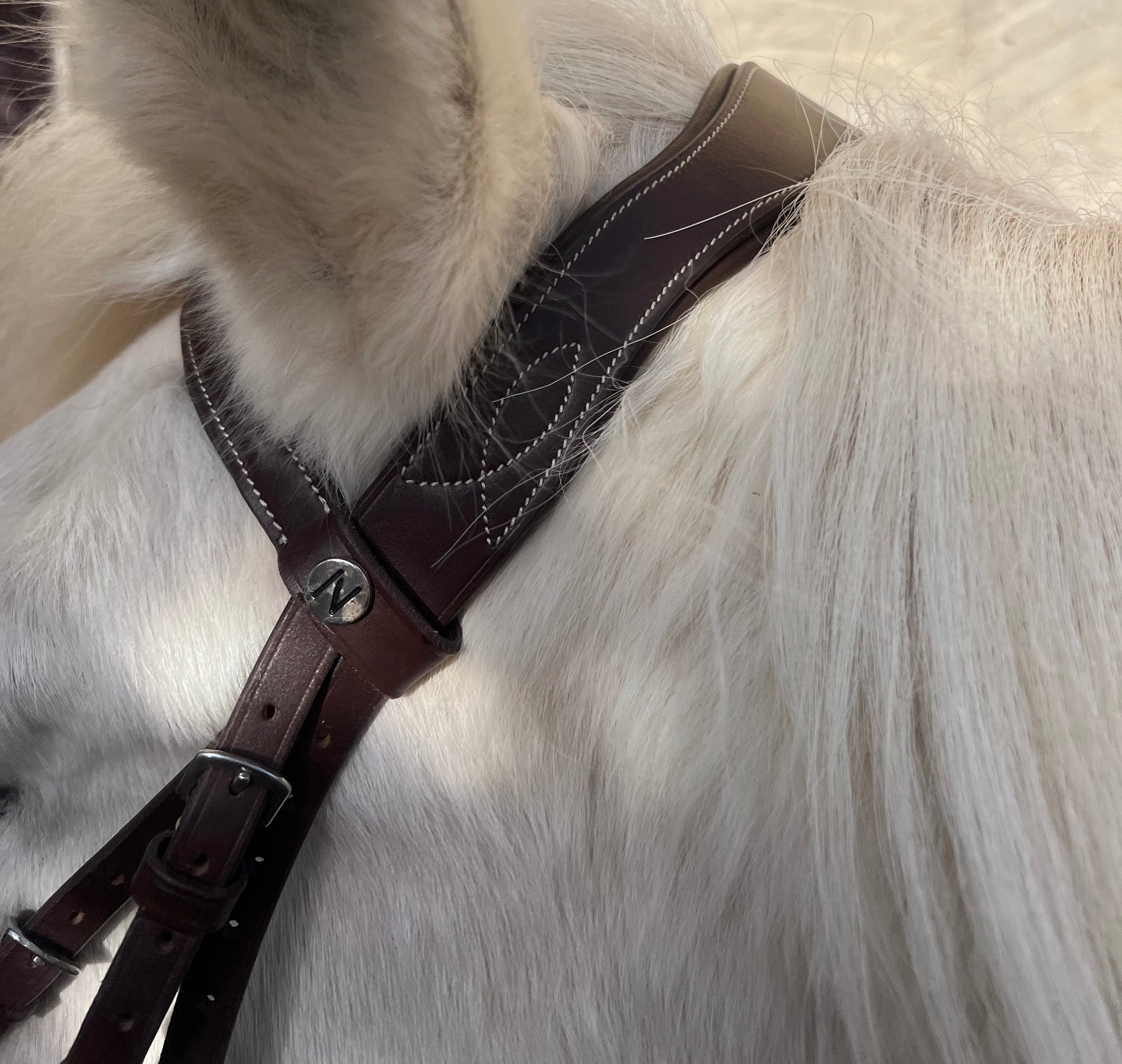 Ce bridon possède une têtière anatomique souple pour plus de confort.