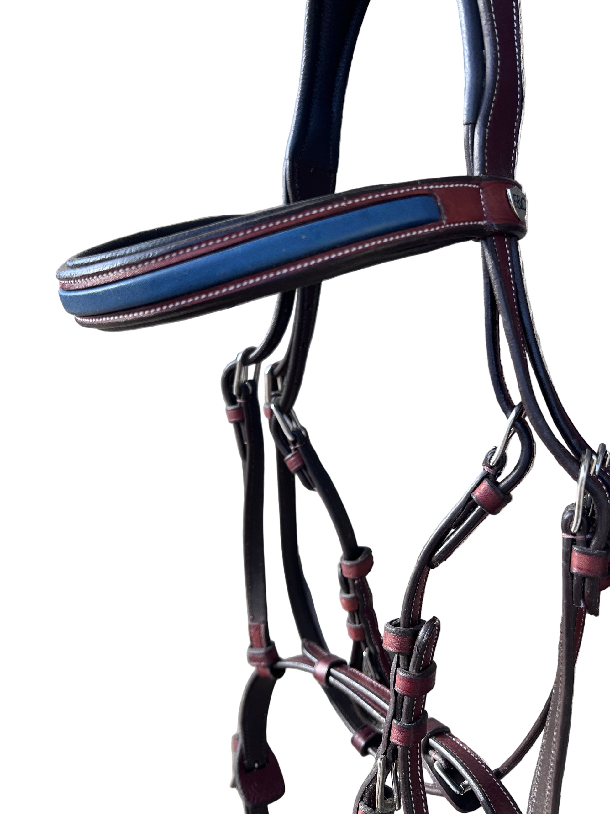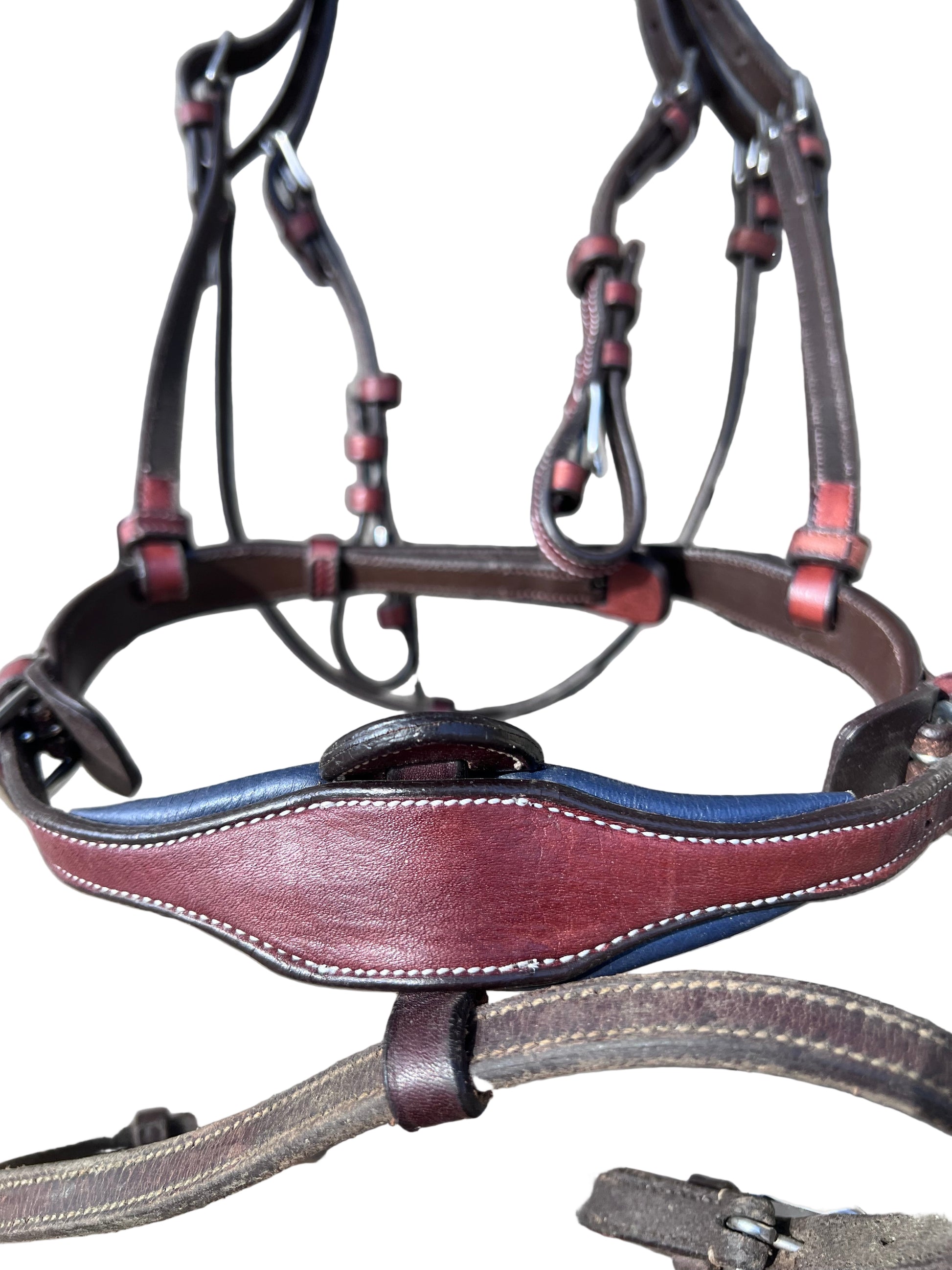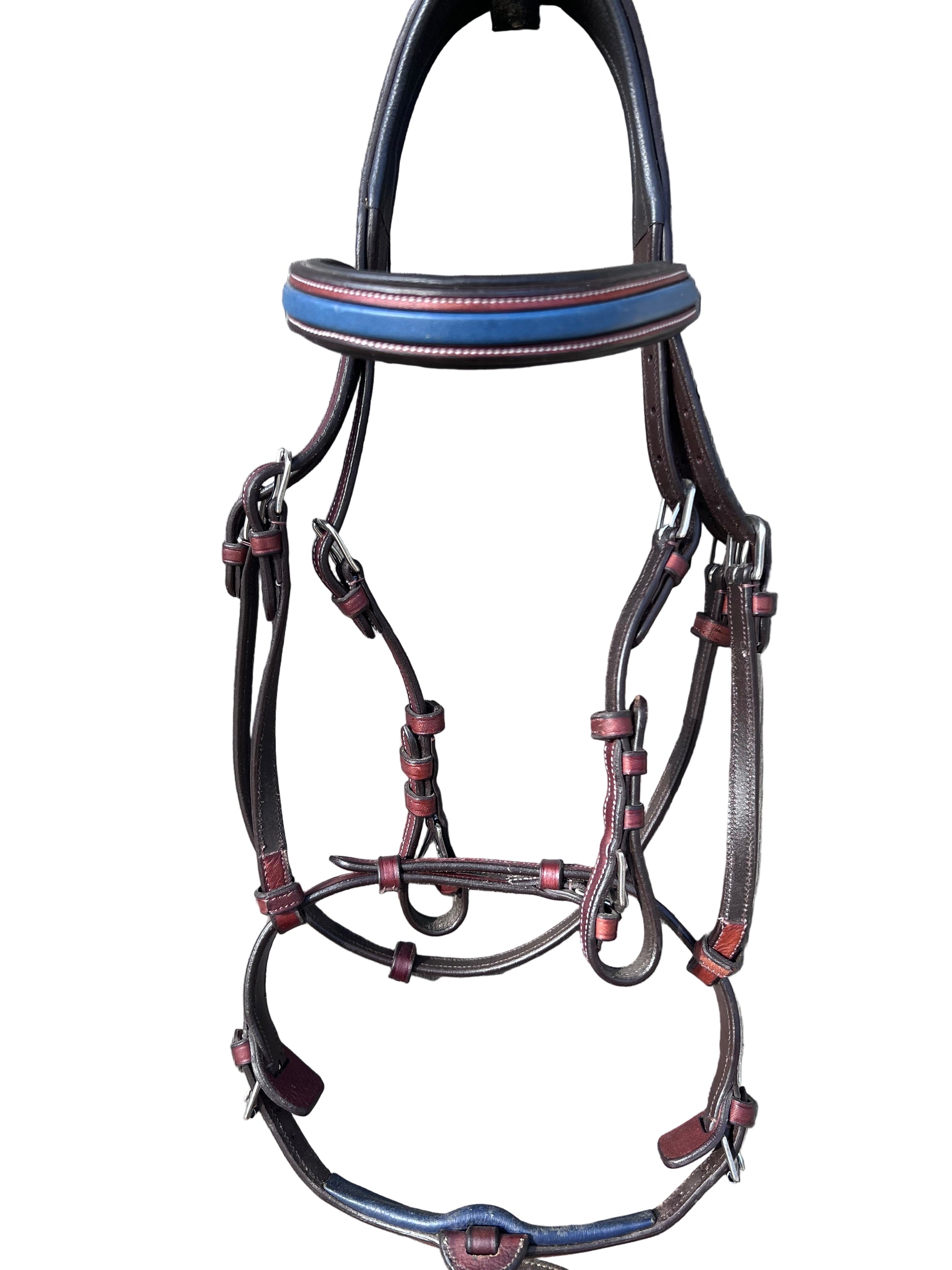 Muserolle combinée doublé contrasté, avec passant de muserolle amovible.