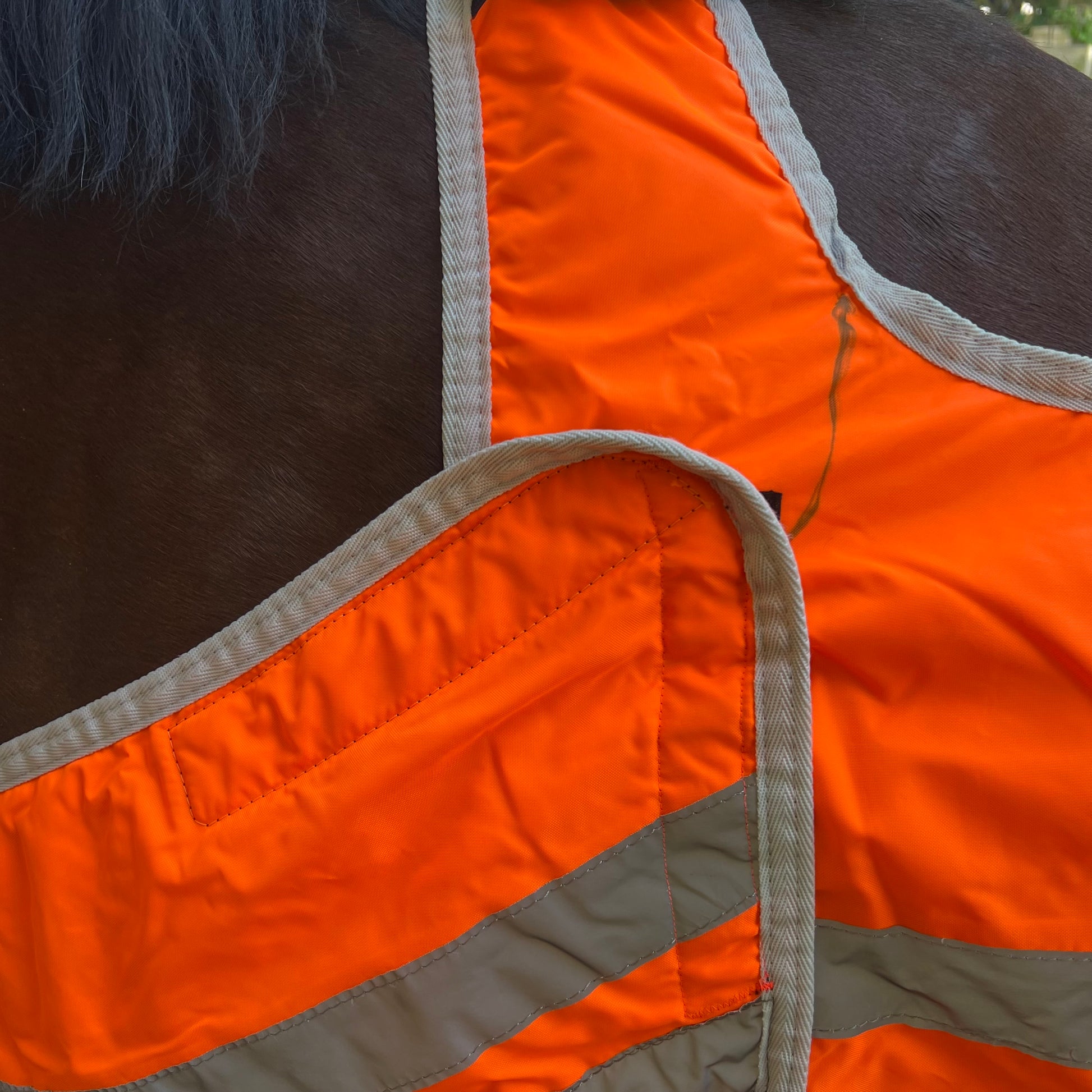 Couverture de balade avec larges bandes réfléchissantes tout autour pour une bonne visibilité dans l’obscurité. Avec plastron.