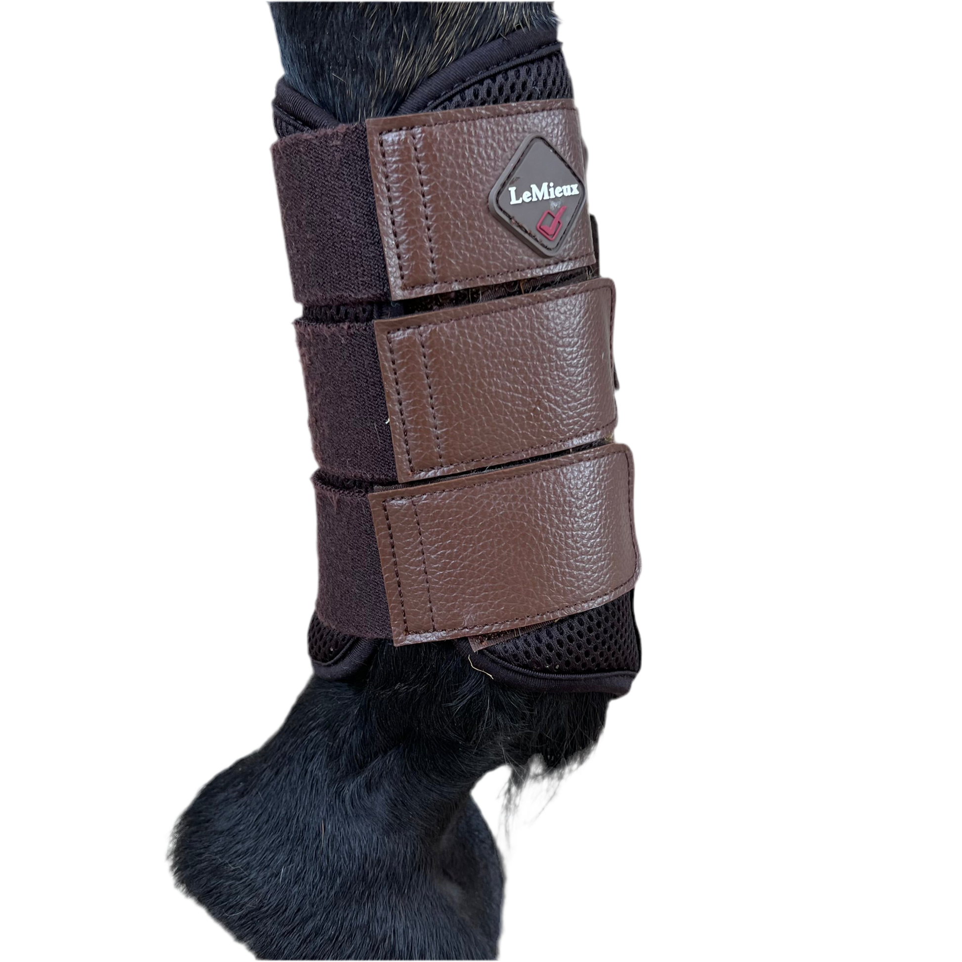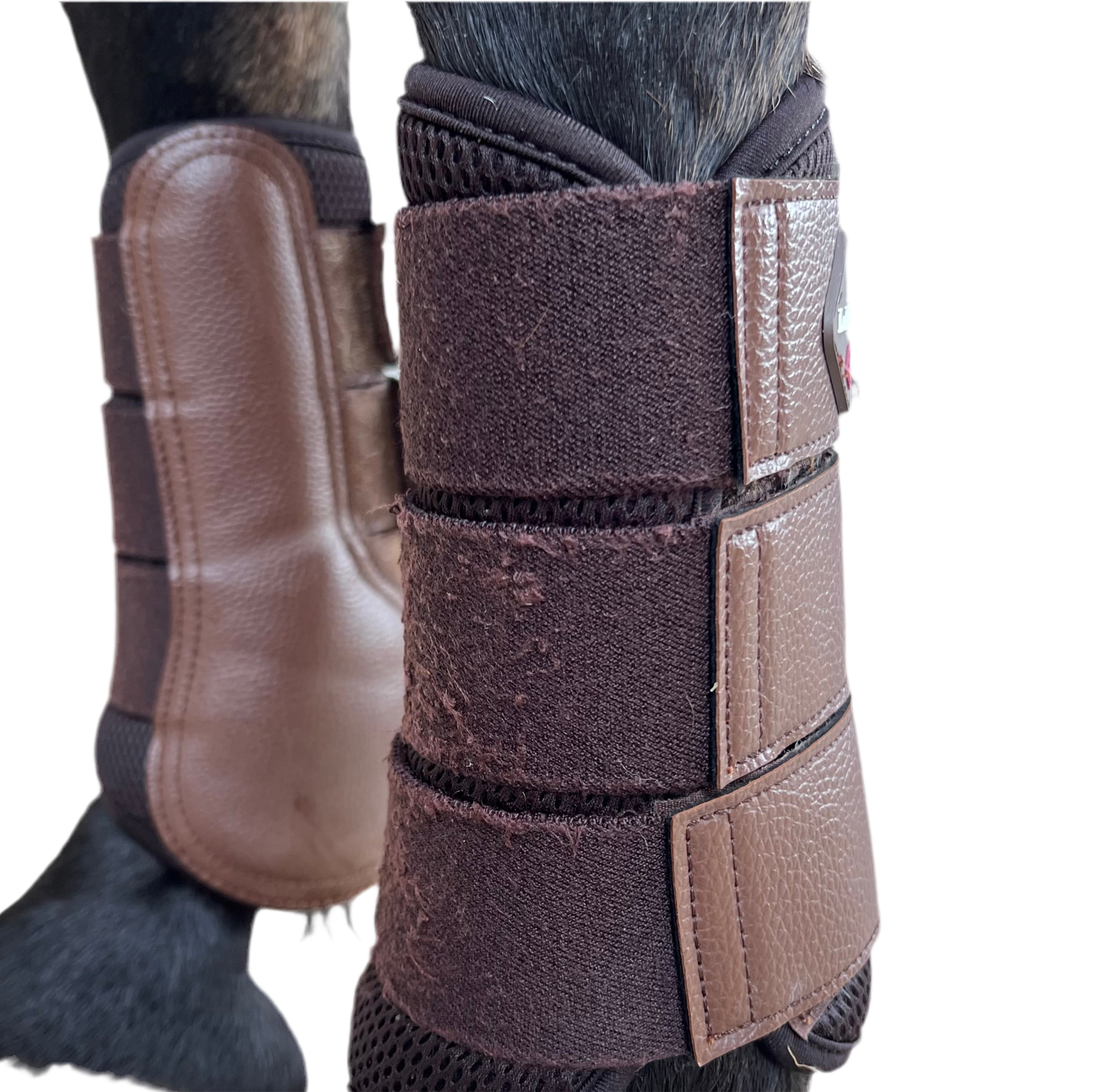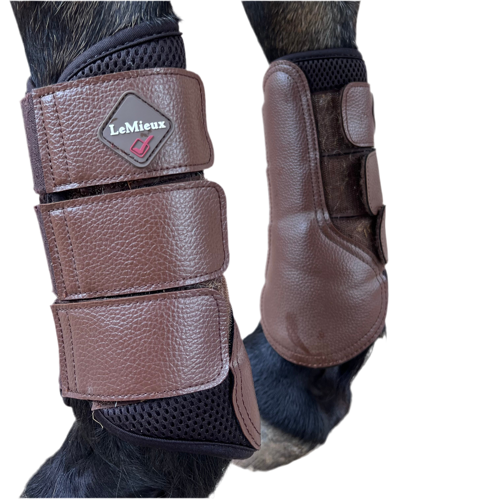 Ces guêtres souples en cuir permettent de protéger les jambes de votre cheval des chocs.