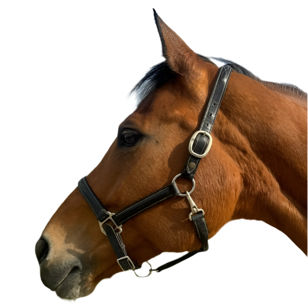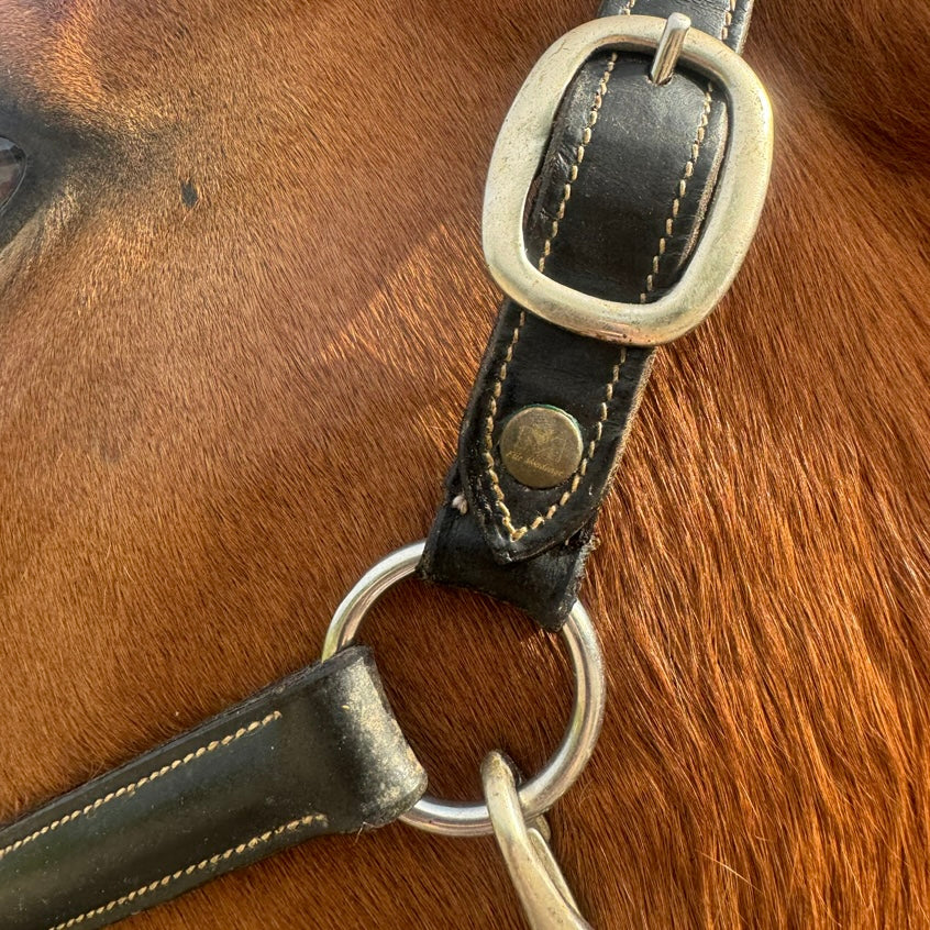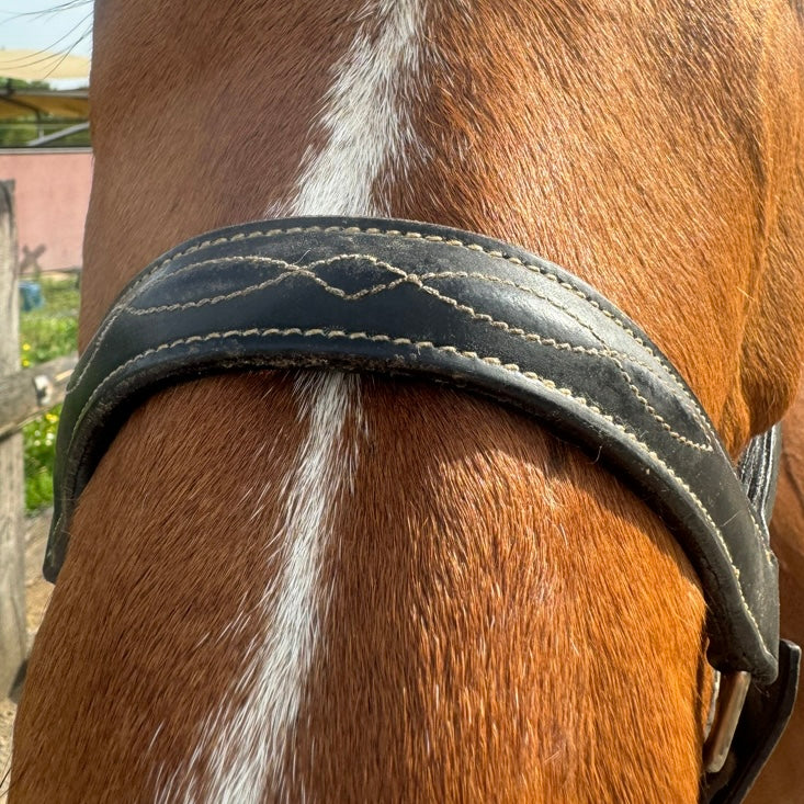Licol en cuir possédant de jolies surpiqûres blanches.