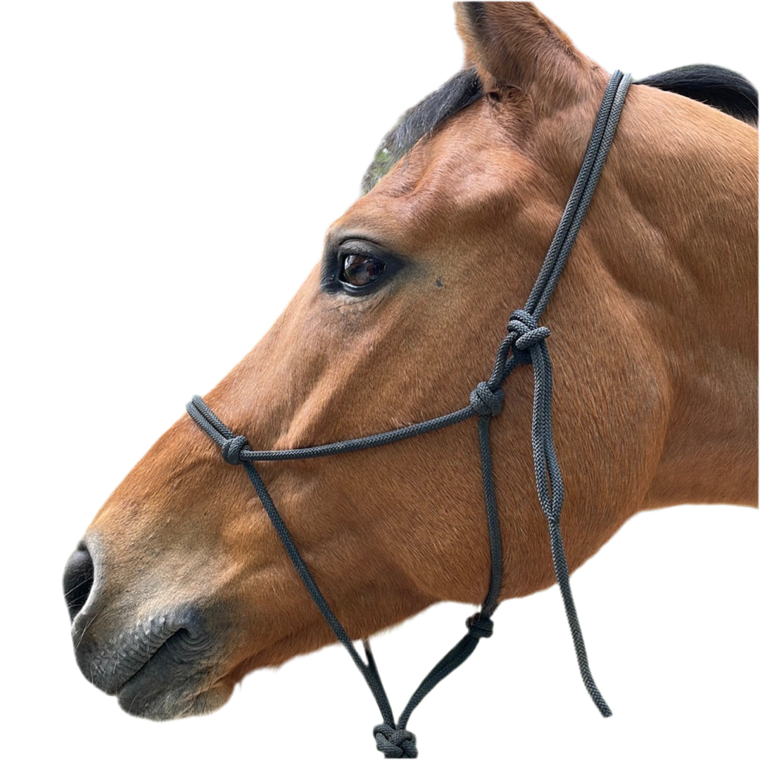 Klassisches und robustes Knotenhalfter aus starkem Seil in toller Farbe. Befestigungsschlaufe für Zügel oder Lanyard