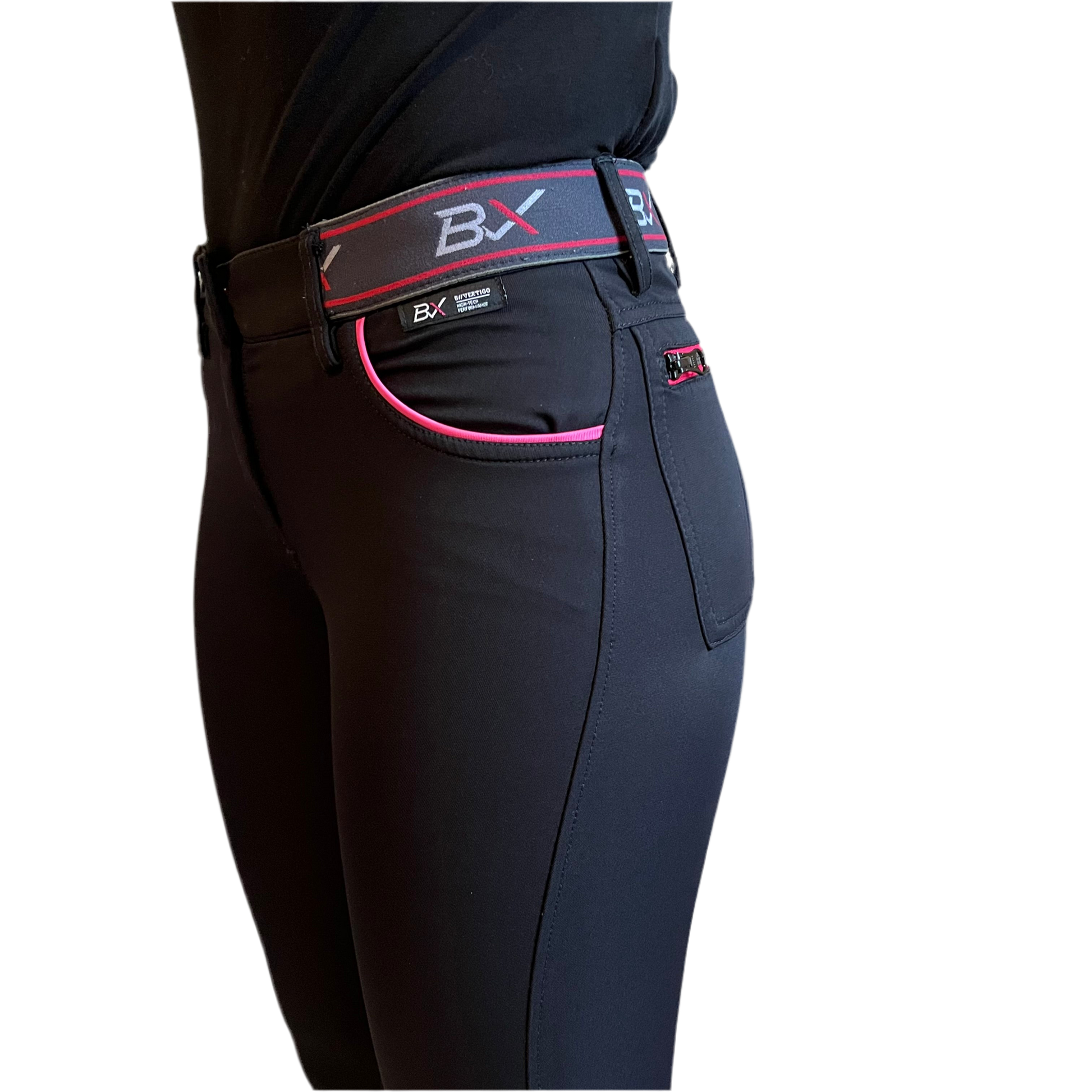 Ce pantalon possède une taille élastique pour un excellent maintient. Il possède également des gripps au niveau des genoux pour une meilleure fixité de la jambe à cheval.