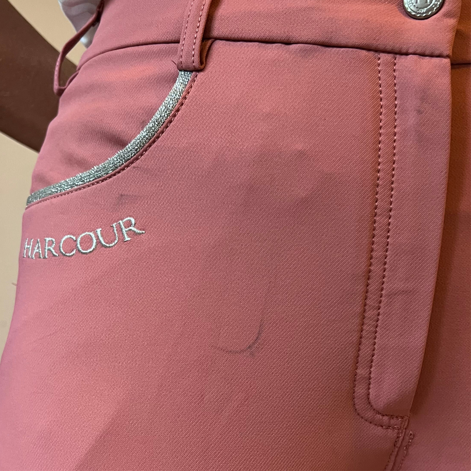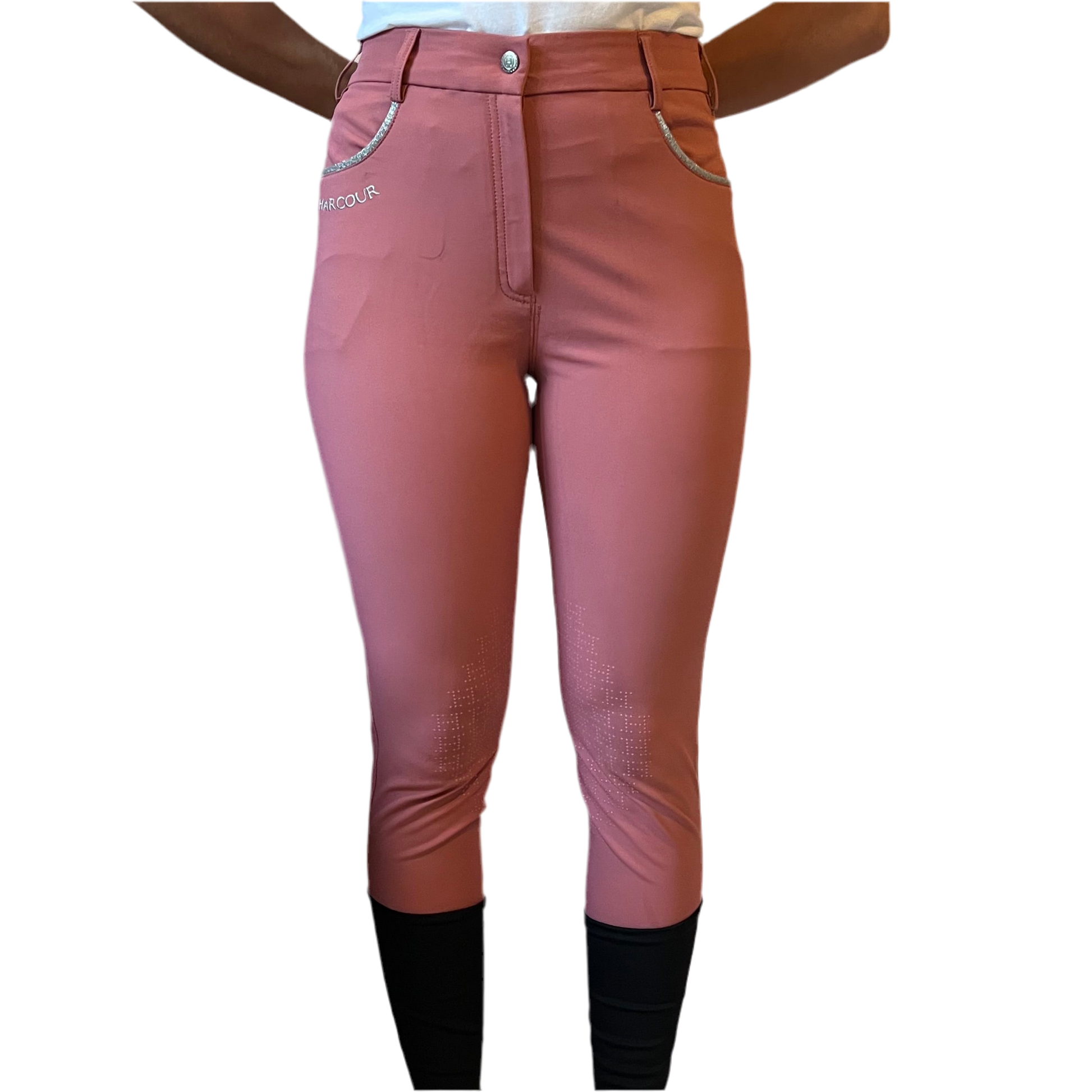 Le pantalon d'équitation Vogue Full Seat System Grip pour femme de Harcour, en tissu Harcour Technology : respirant, hydrofuge et bi-étirable. Technologie Fix System, 8 couches de silicone pour une sécurité maximale. De beaux détails comme le logo Crystal et les poches avec passepoil brillant.