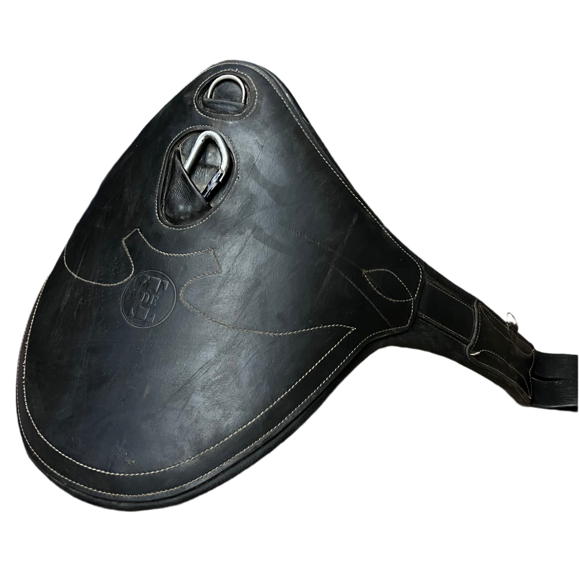 Dieser Gurt verfügt über D-Ringe, an denen Hilfszügel befestigt werden können, elastische Gurtenden und Rollschnallen aus Edelstahl sorgen für eine einfache Befestigung.
