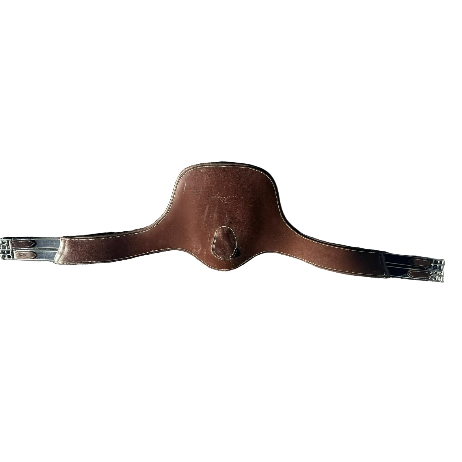 L’attache de la martingale est équipée d’un cache en cuir pour éviter l’accrochage des fers dans le mousqueton au moment des sauts.