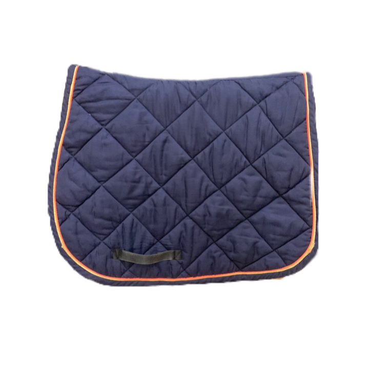 Leuchtend orangefarbene Dada-Stickerei auf der rechten Seite.