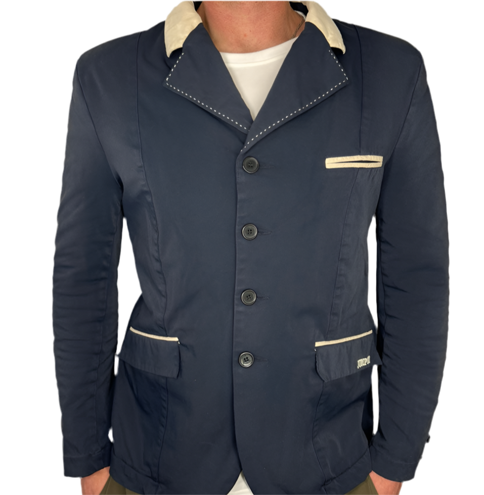 Cette veste de concours possède des détails crème sur le col et les revers de poches. Elle est confortable et s’adapte parfaitement à la morphologie du cavalier.